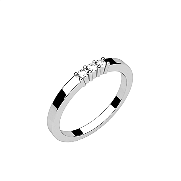 Anillo de pedida modelo Gabriela fabricado en oro blanco, disponible en 9K y 18K. Diseño elegante con piedras alineadas, disponible en circonitas AAA o diamantes. Fabricación bajo pedido y posibilidad de personalización.